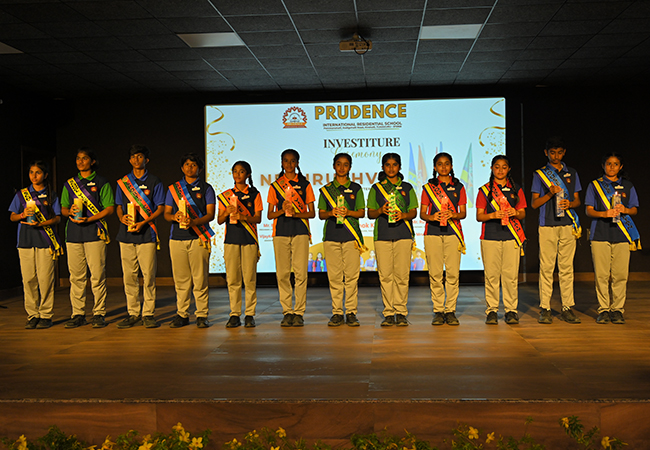 The Investiture Ceremony of Prudence International Residential School, titled NETHRUTHVA – Lead for Betterment, was held with great enthusiasm on 9th July, 2025, at the S P Auditorium. The event aimed to instill leadership qualities among students and officially confer duties to the newly elected School Council members.