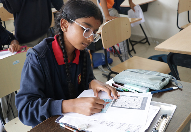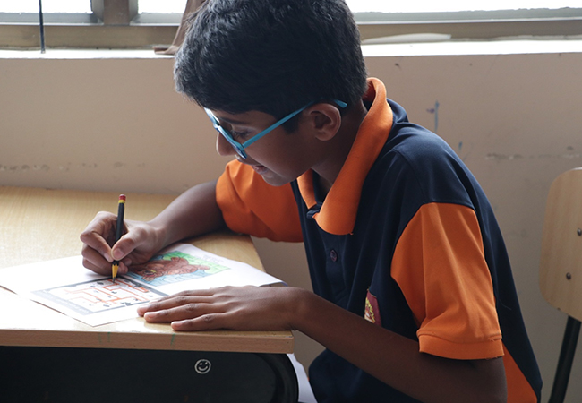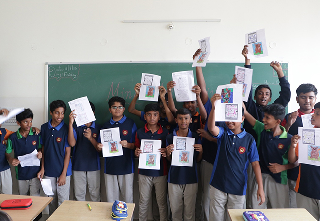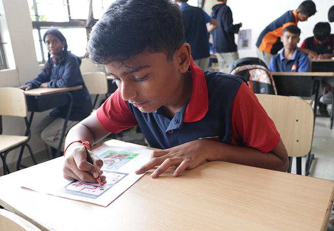 Students received a special Mind Maze worksheet from their class teachers. Using colour pencils and crayons, they worked their way through the puzzles, following the given instructions carefully.