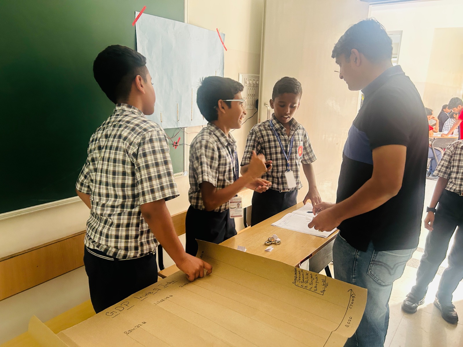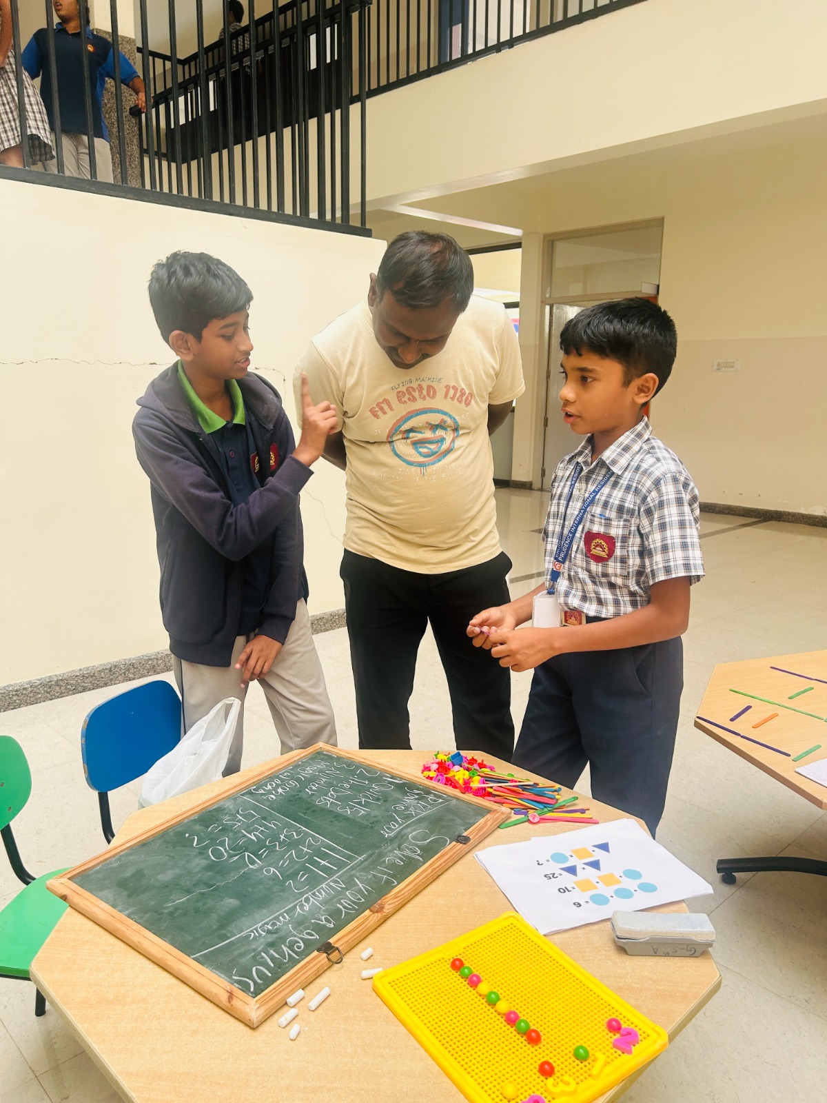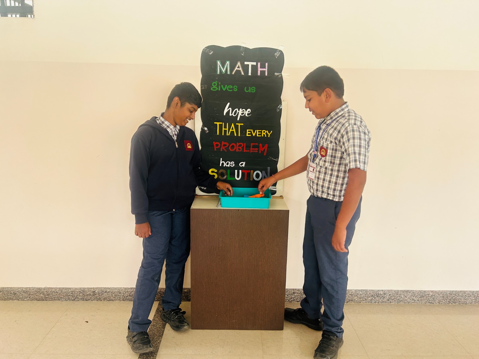 Mathathon was an innovative interactive session designed exclusively for Grade 5 and 6 students. This math expo offered a dynamic platform for children to exhibit their creativity through displays, puzzles, and games centered on mathematical concepts, transforming learning into an enjoyable experience. Key Activities and Highlights Student Presentations: Participants showcased handmade math models, challenging puzzles, and interactive games that illustrated topics like geometry, arithmetic, and logic. Parent Engagement: Parents were cordially invited to witness and participate. Children enthusiastically guided their parents through the games, explaining concepts in simple, engaging ways—bridging classroom learning with real-world application. Interactive Sessions: The entire event buzzed with hands-on activities, group challenges, and peer explanations, making math accessible and fun.