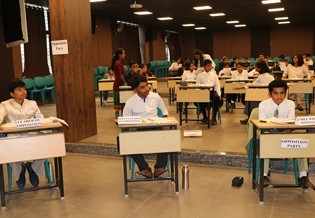 Session was planned similar to the working of legislature in our country. Both ruling party and opposition party along with important portfolio and ministries were allotted to the future leaders, where they presented their views and arguments regarding the bill. Agenda of the session was introducing and passing of the “Integrated public safety and welfare budget reallocation” Bill 2025. Bill was introduced by finance minister by the ruling party with proper procedure, after getting consent of the speaker of the session. After the introduction of the bill, heated argument was there between both ruling and opposition party.