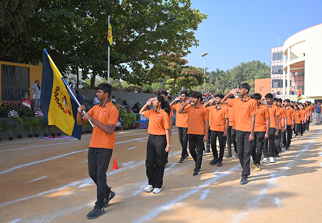 Day 1 featured the inauguration in the presence of Chief Guest Ms. Shubha Kalyan, IAS, Deputy Commissioner, Tumakuru District, along with other distinguished guests. The ceremony included the Flag Hoisting, March Past, Torch Ceremony, Oath Taking, and cultural performances such as Flag Drill, Pom Pom Display, Umbrella Drill, Taekwondo, Choir, and Bambo. Montessori and Grades 1–3 participated enthusiastically in events like the 50m and 100m races, Sack Race, Lemon & Spoon Race, and Relay.