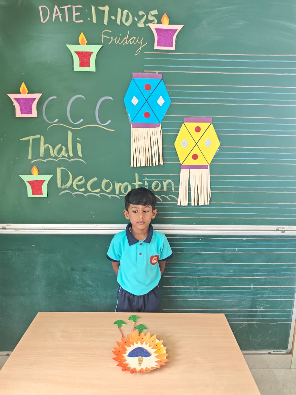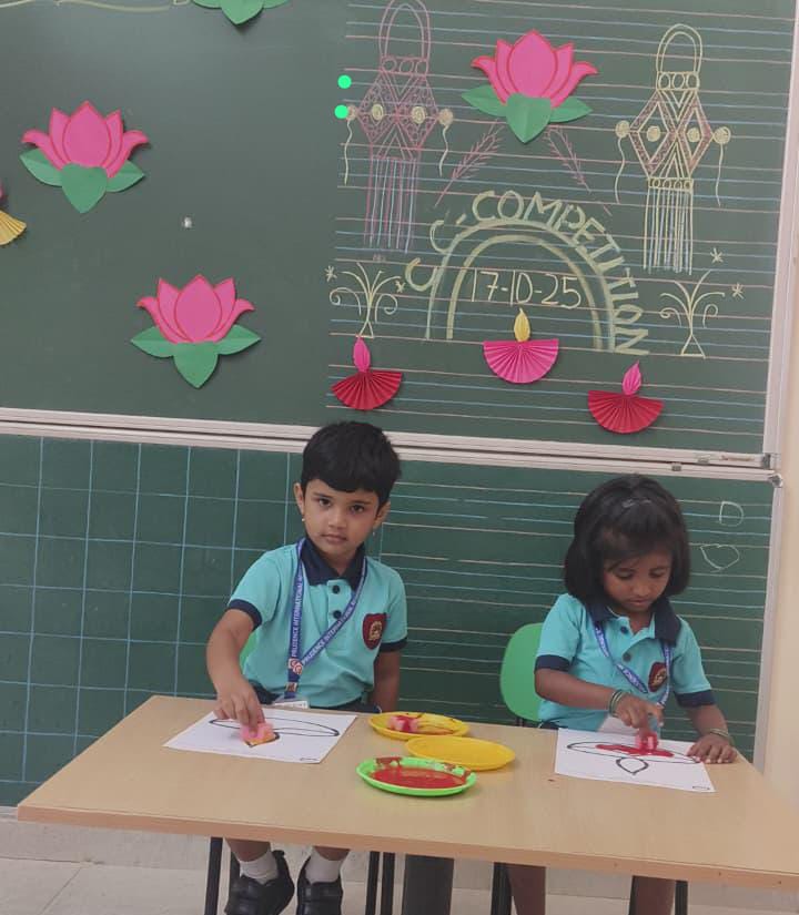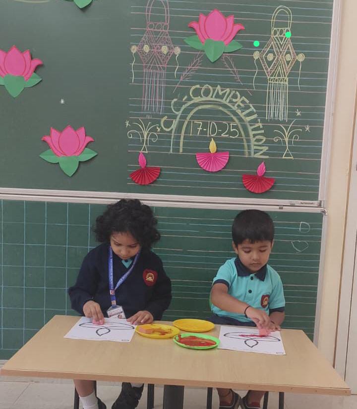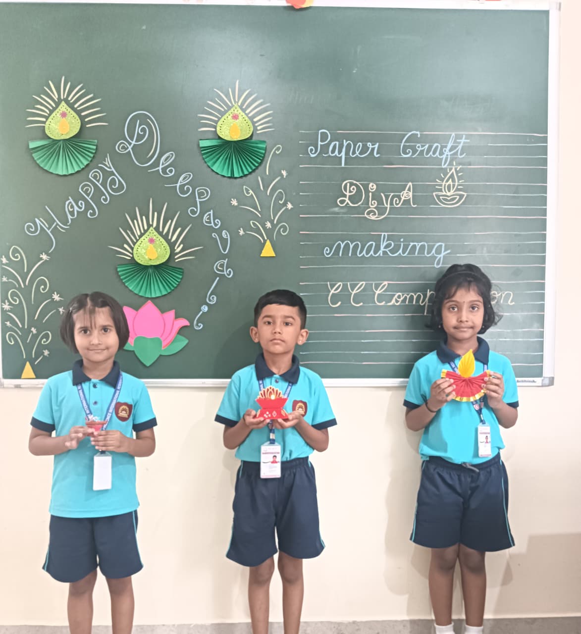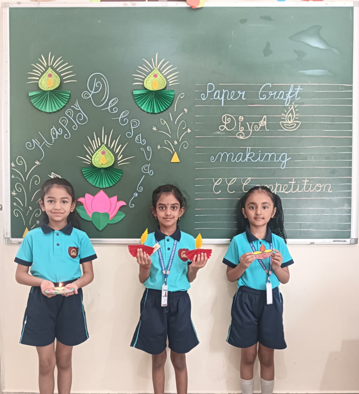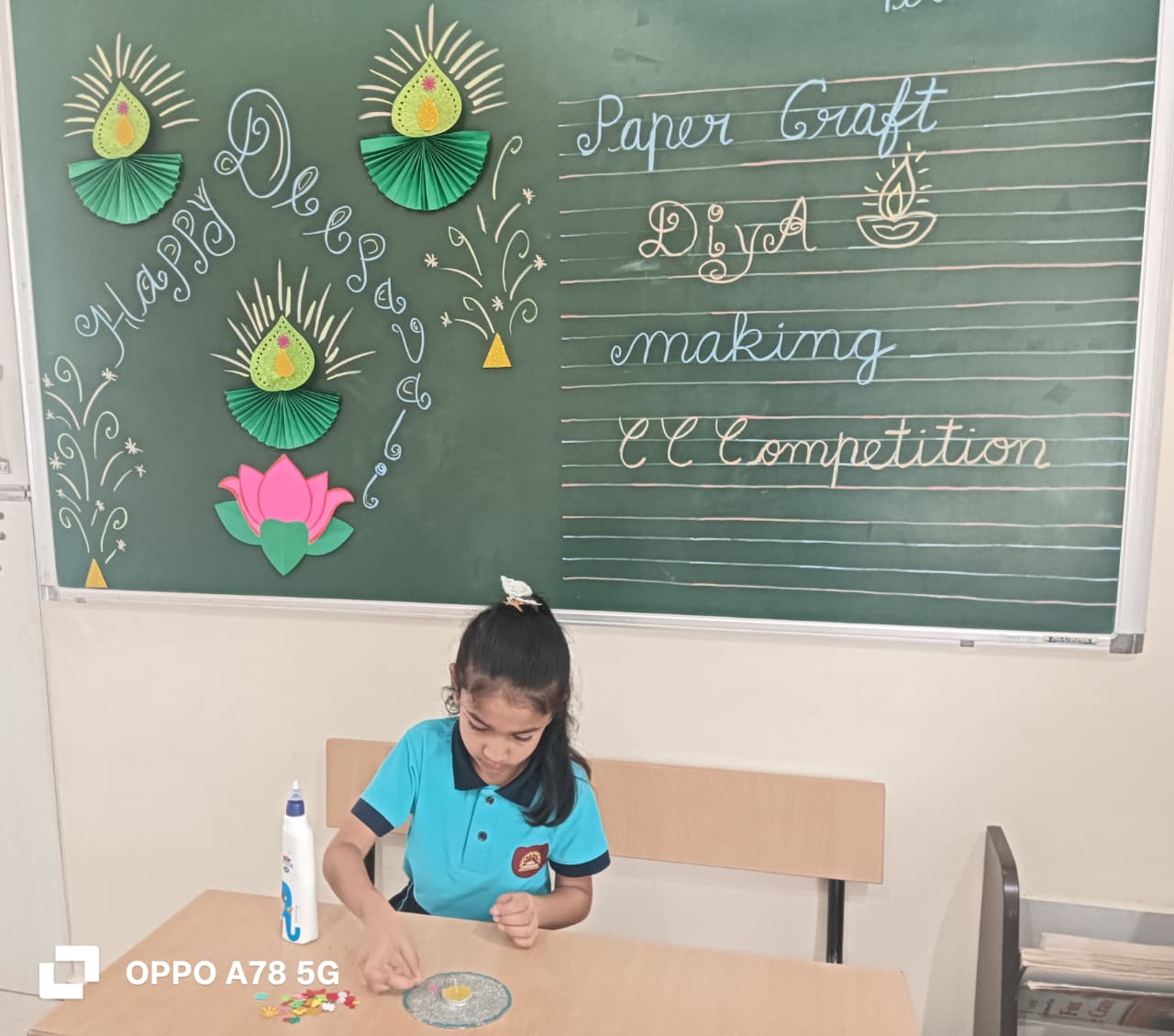 A Diwali celebration competition was held at our school on 17 October 2025. The event aimed to encourage creativity, teamwork, and cultural expression among students. Participants took part enthusiastically in various activities, including decorating Diwali diyas, designing paper plate thalis, and making beautiful wall decors. The school premises were filled with festive colours and excitement as students showcased their artistic talents. Teachers appreciated the creativity and effort displayed by all participants. The event concluded with joyful and inspiring celebration that reflected the true spirit of Diwali.