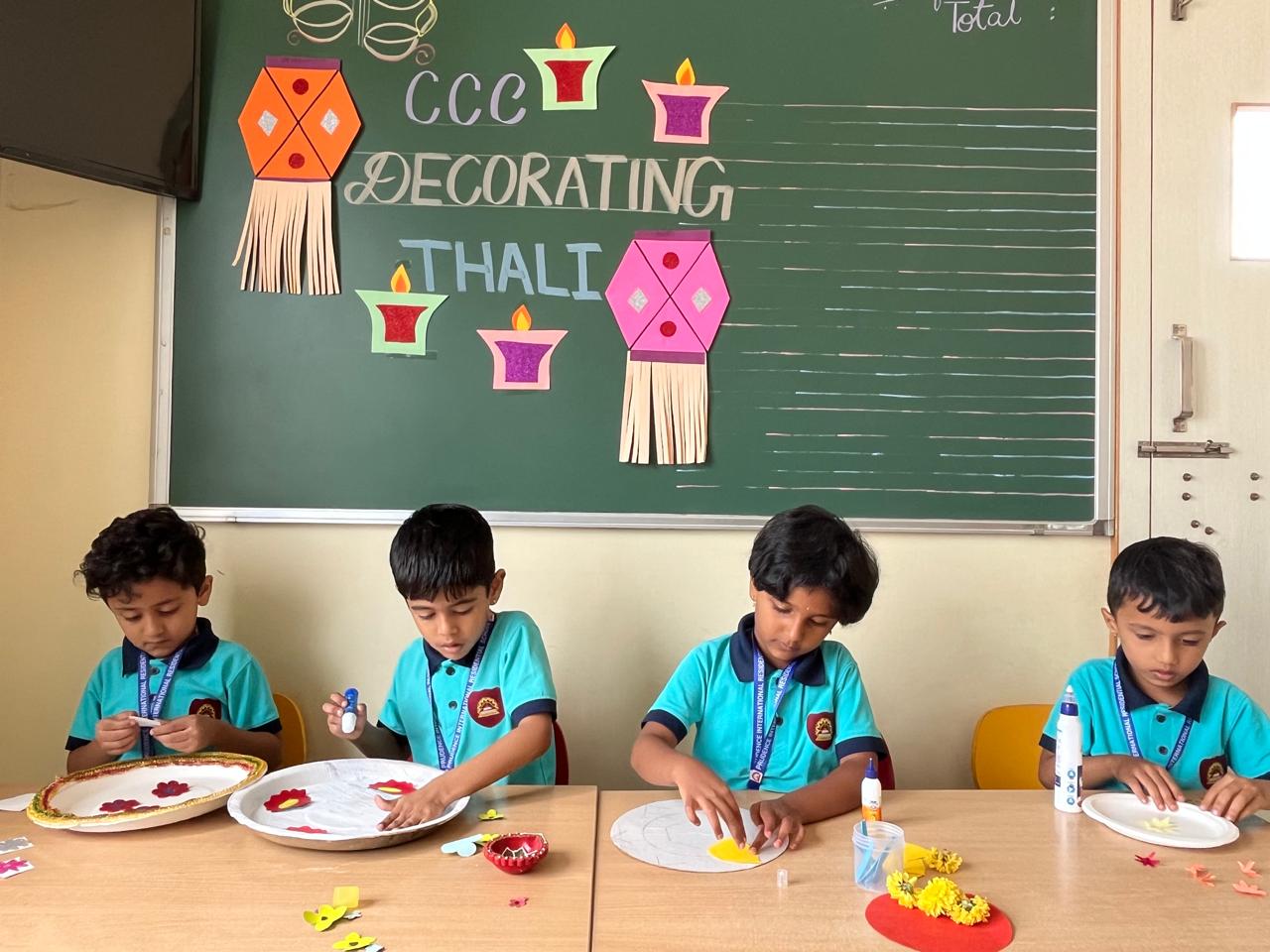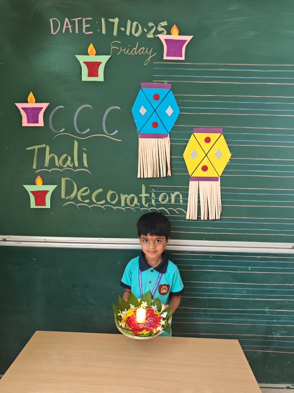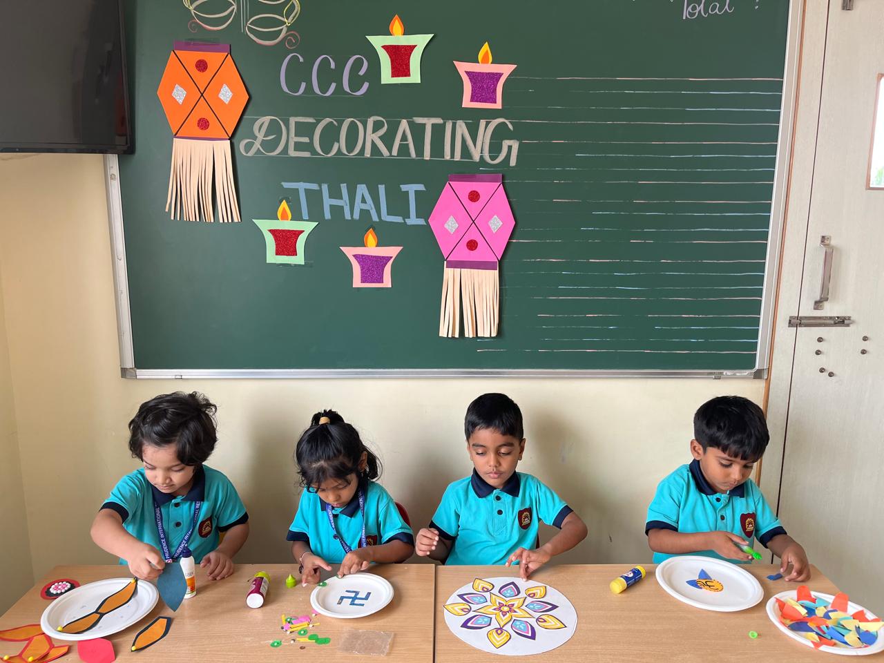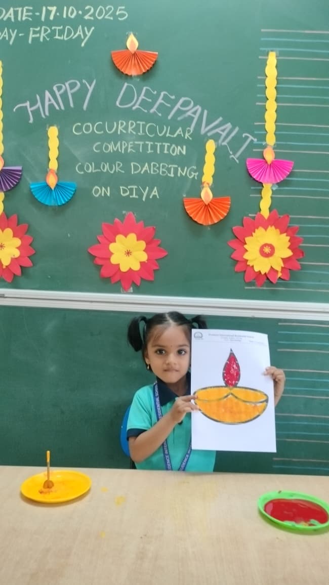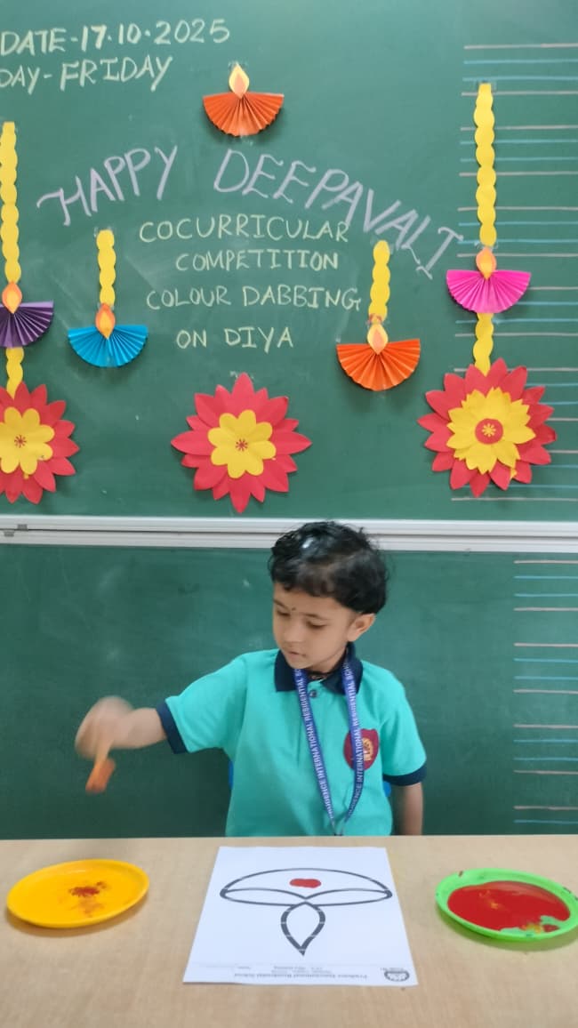 A Diwali celebration competition was held at our school on 17 October 2025. The event aimed to encourage creativity, teamwork, and cultural expression among students. Participants took part enthusiastically in various activities, including decorating Diwali diyas, designing paper plate thalis, and making beautiful wall decors. The school premises were filled with festive colours and excitement as students showcased their artistic talents. Teachers appreciated the creativity and effort displayed by all participants. The event concluded with joyful and inspiring celebration that reflected the true spirit of Diwali.