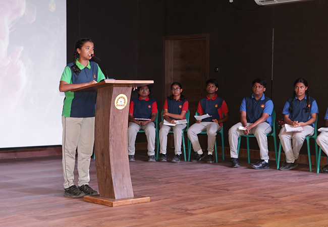 The school conducted an engaging Poetry Slam competition that provided a platform for students to express their creativity, emotions, and thoughts through the power of words. Participants from 9 and 10 grades showcased their original poems on diverse themes, ranging from nature, emotions, and social issues to dreams and self-discovery.