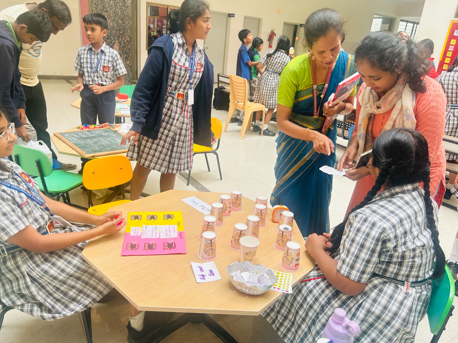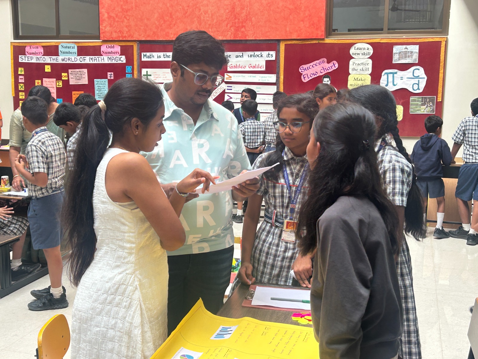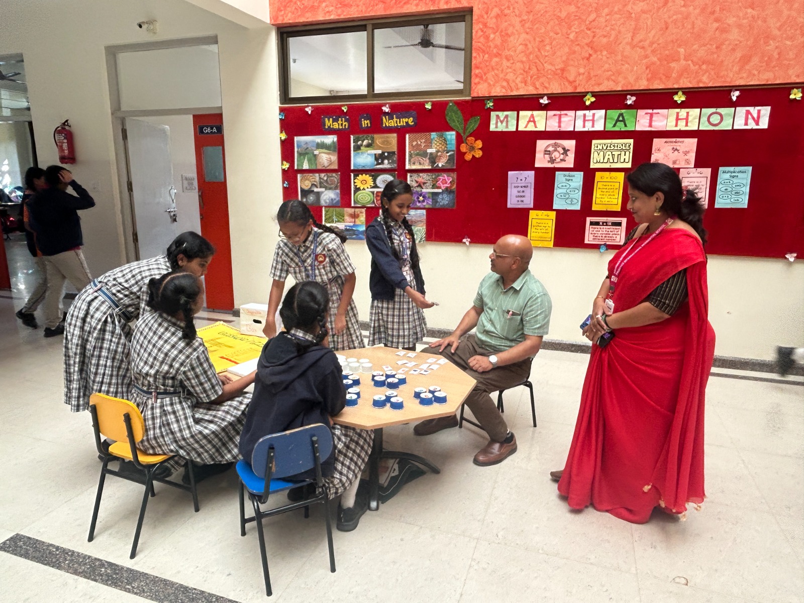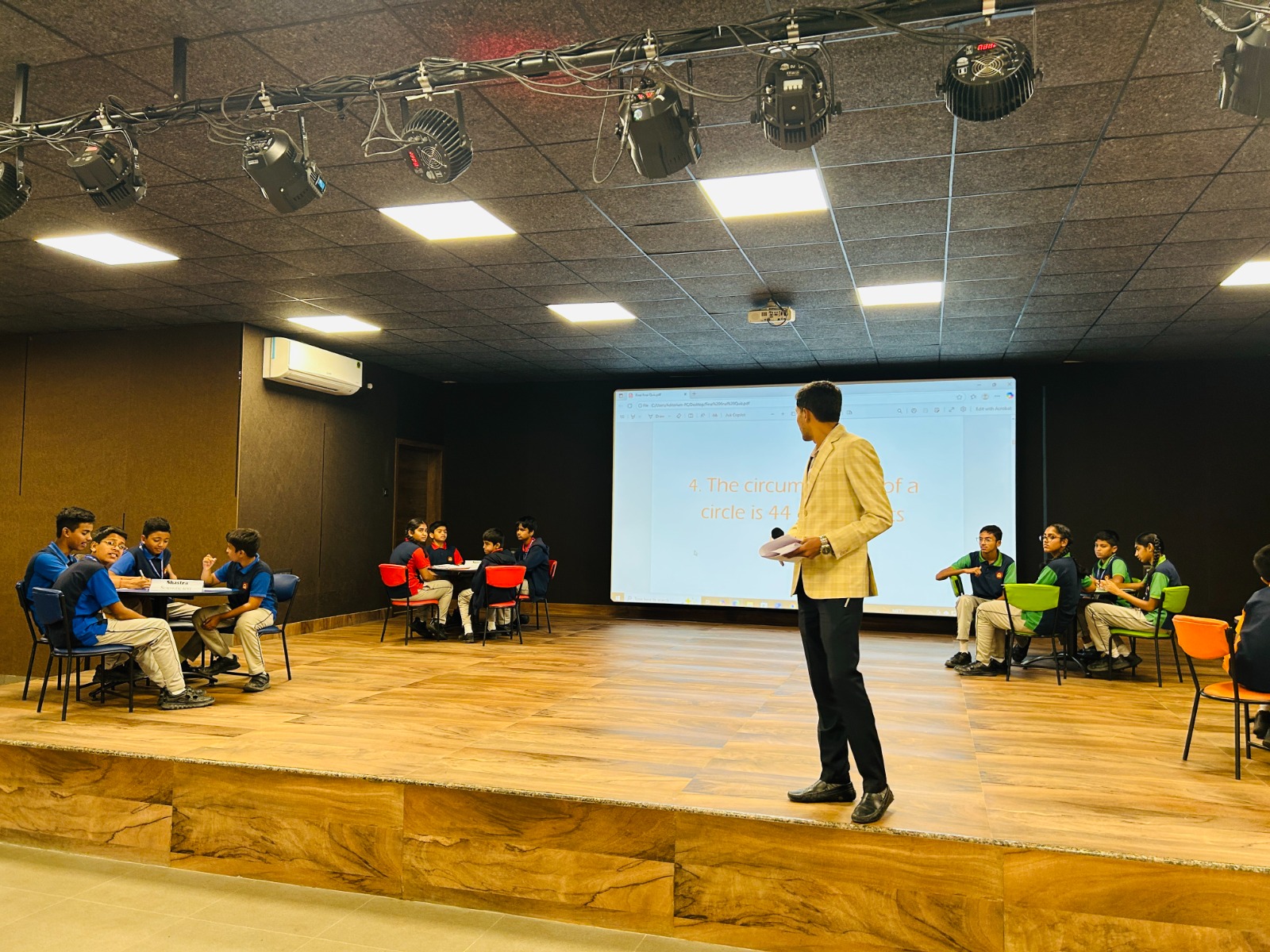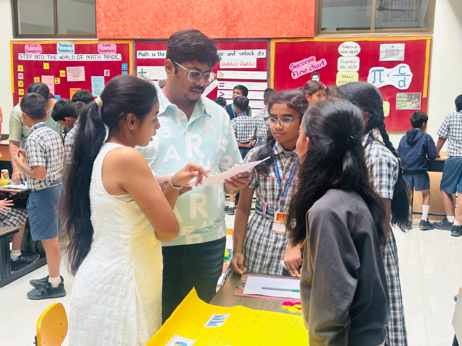 Mathathon was an innovative interactive session designed exclusively for Grade 5 and 6 students. This math expo offered a dynamic platform for children to exhibit their creativity through displays, puzzles, and games centered on mathematical concepts, transforming learning into an enjoyable experience. Key Activities and Highlights Student Presentations: Participants showcased handmade math models, challenging puzzles, and interactive games that illustrated topics like geometry, arithmetic, and logic. Parent Engagement: Parents were cordially invited to witness and participate. Children enthusiastically guided their parents through the games, explaining concepts in simple, engaging ways—bridging classroom learning with real-world application. Interactive Sessions: The entire event buzzed with hands-on activities, group challenges, and peer explanations, making math accessible and fun.