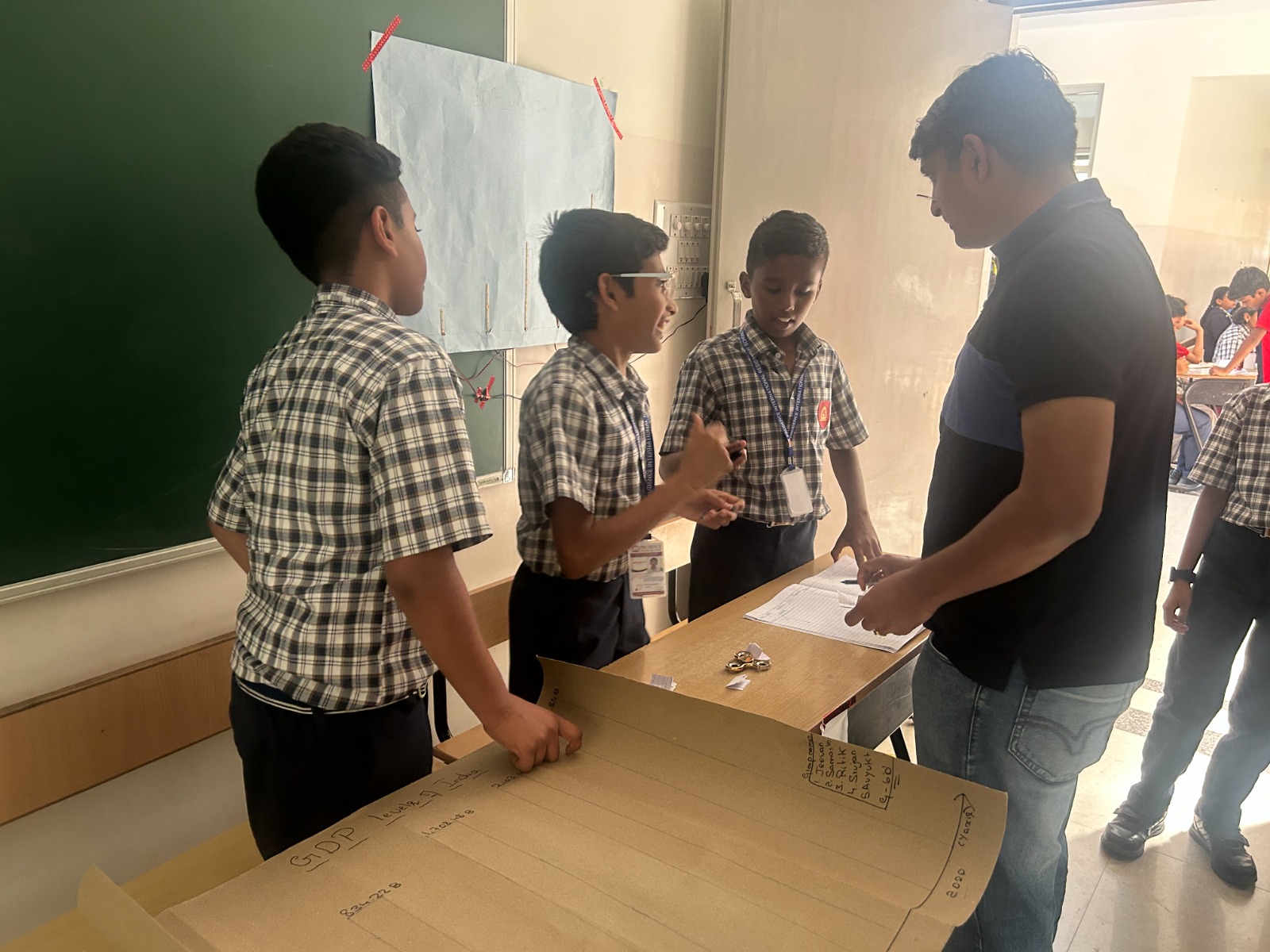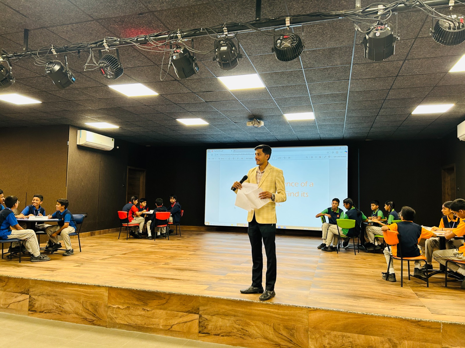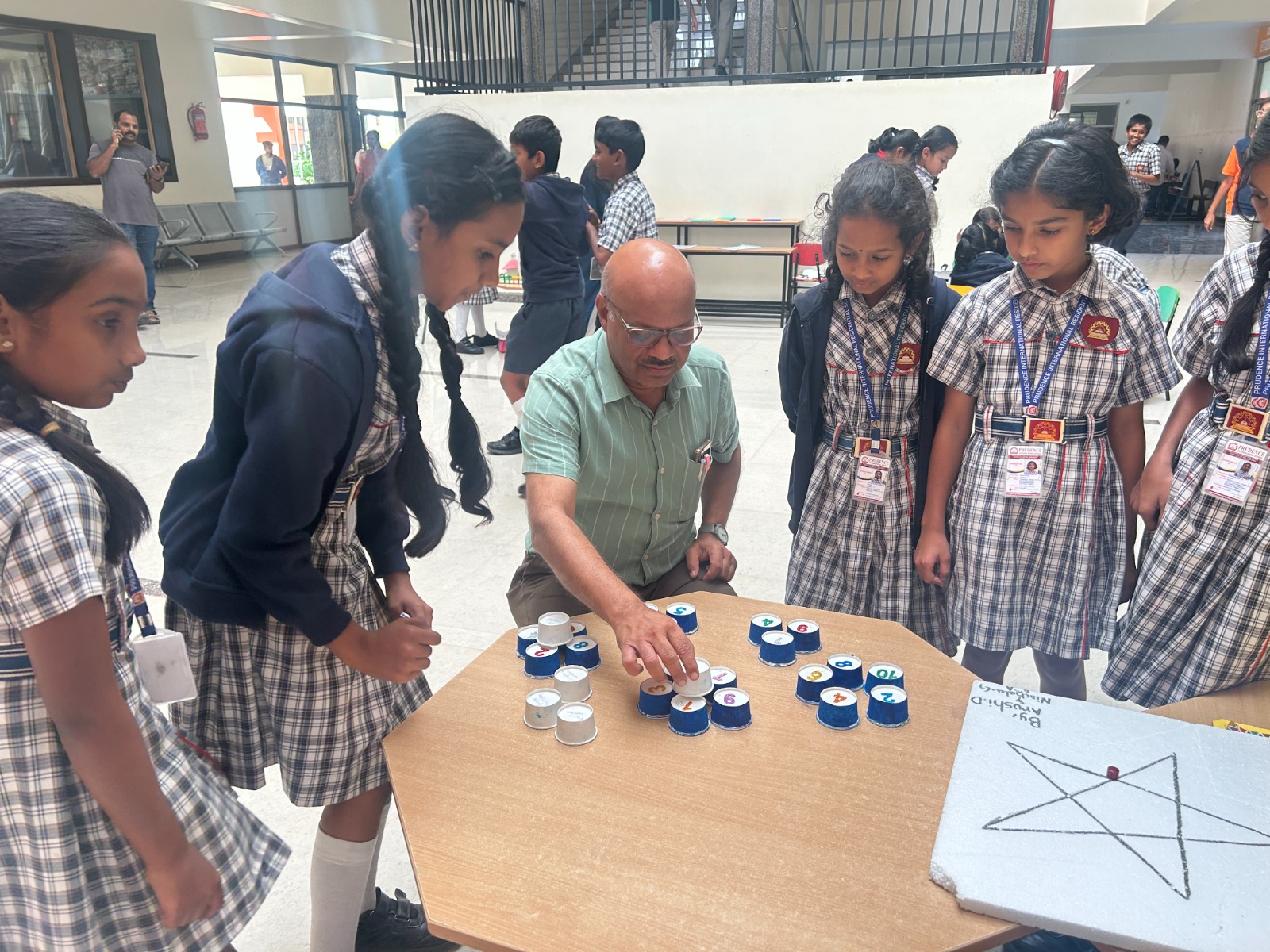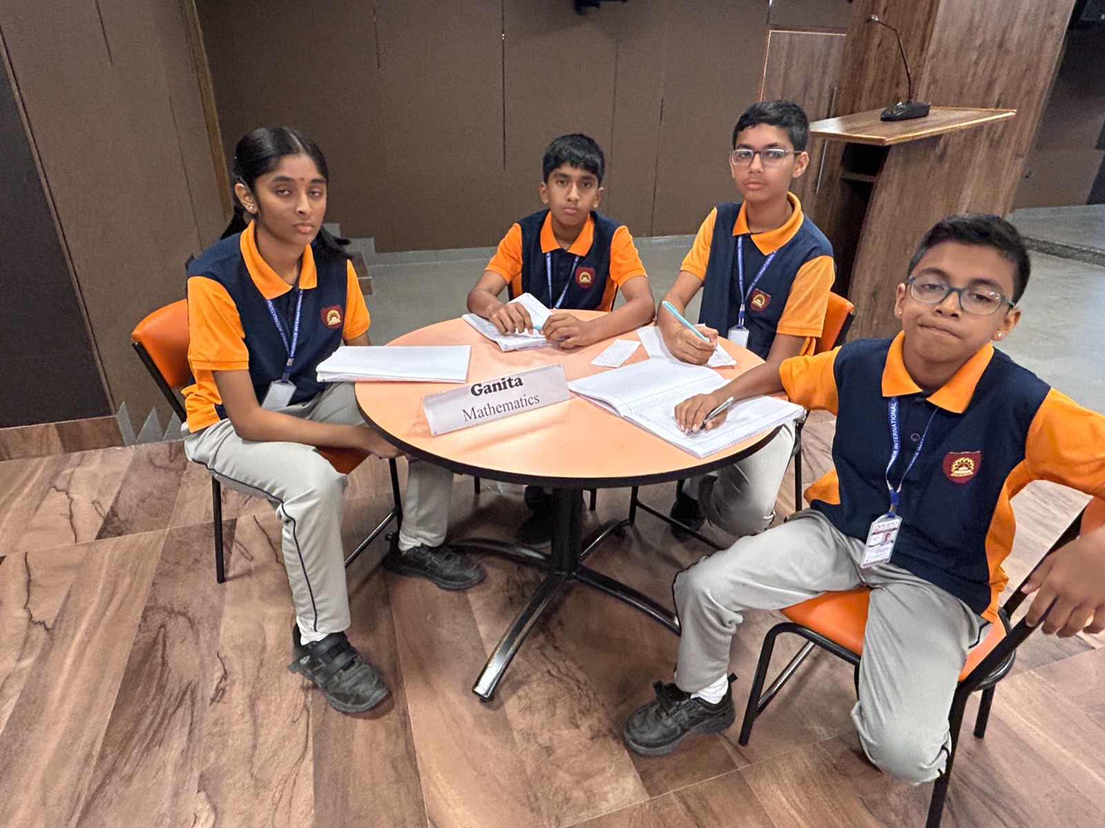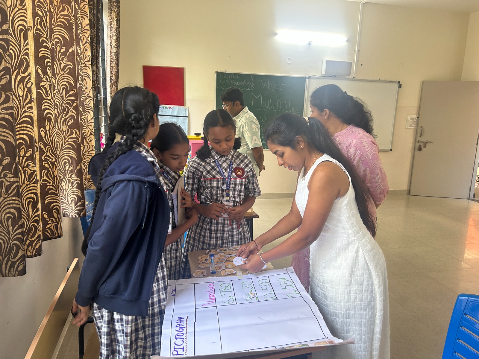 Mathathon was an innovative interactive session designed exclusively for Grade 5 and 6 students. This math expo offered a dynamic platform for children to exhibit their creativity through displays, puzzles, and games centered on mathematical concepts, transforming learning into an enjoyable experience. Key Activities and Highlights Student Presentations: Participants showcased handmade math models, challenging puzzles, and interactive games that illustrated topics like geometry, arithmetic, and logic. Parent Engagement: Parents were cordially invited to witness and participate. Children enthusiastically guided their parents through the games, explaining concepts in simple, engaging ways—bridging classroom learning with real-world application. Interactive Sessions: The entire event buzzed with hands-on activities, group challenges, and peer explanations, making math accessible and fun.