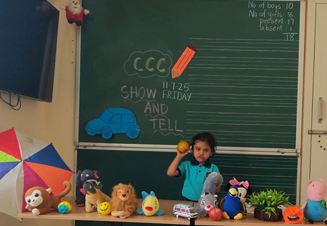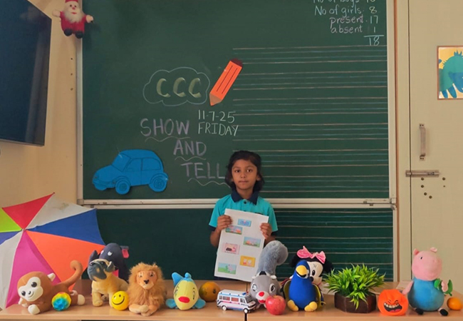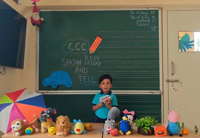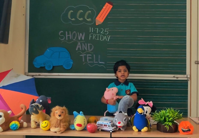The Show and Tell Competition for M2 and M3 students was successfully conducted on 11th July 2025. The young learners participated with great enthusiasm, bringing along a variety of interesting items such as toys, books, fruits, and models.