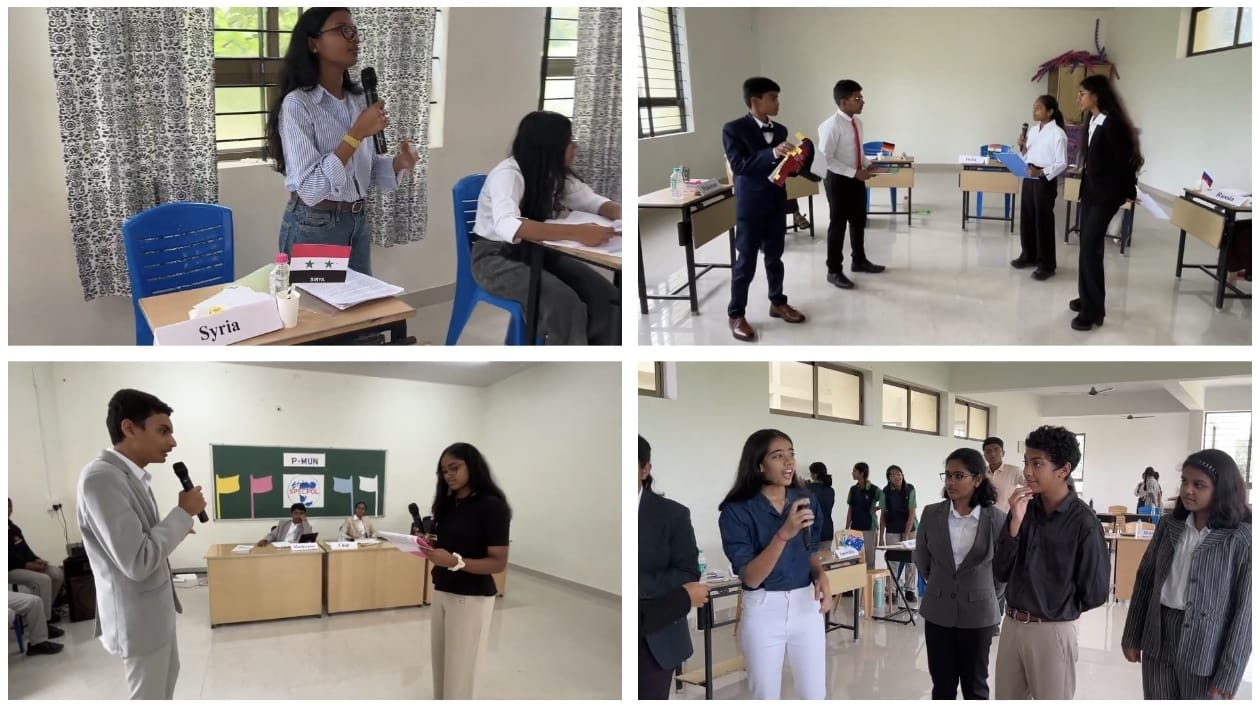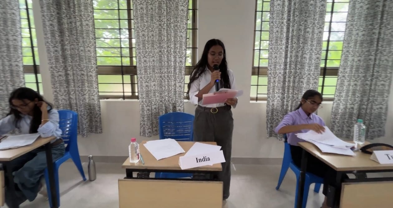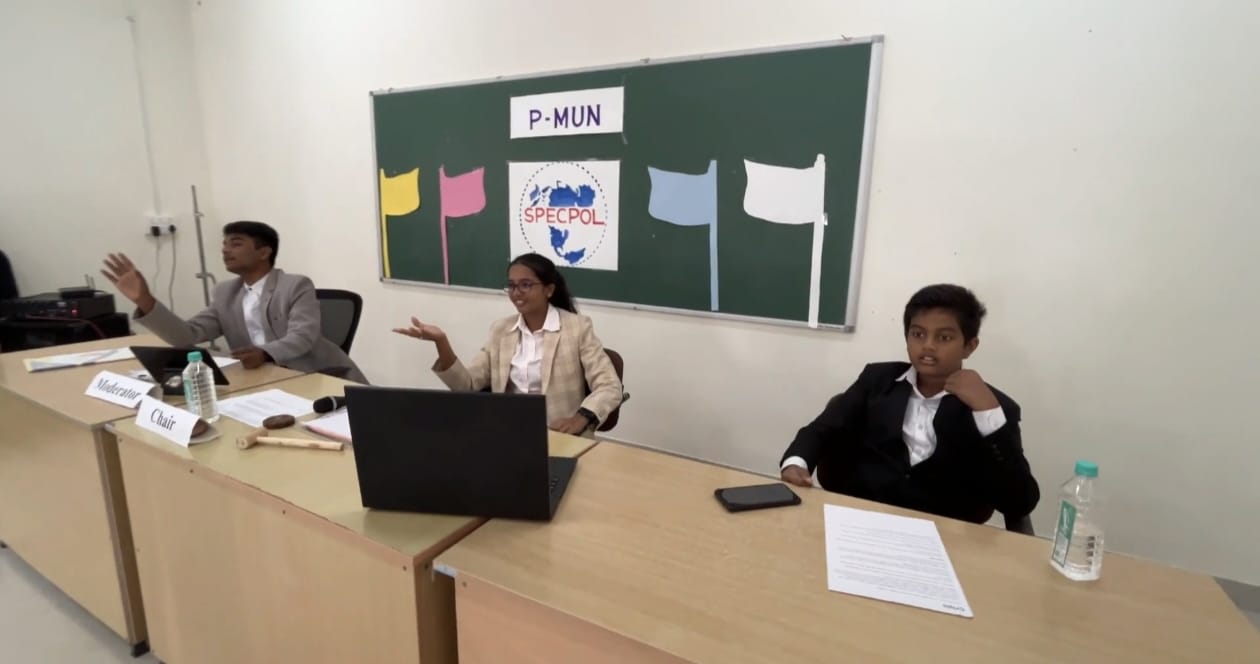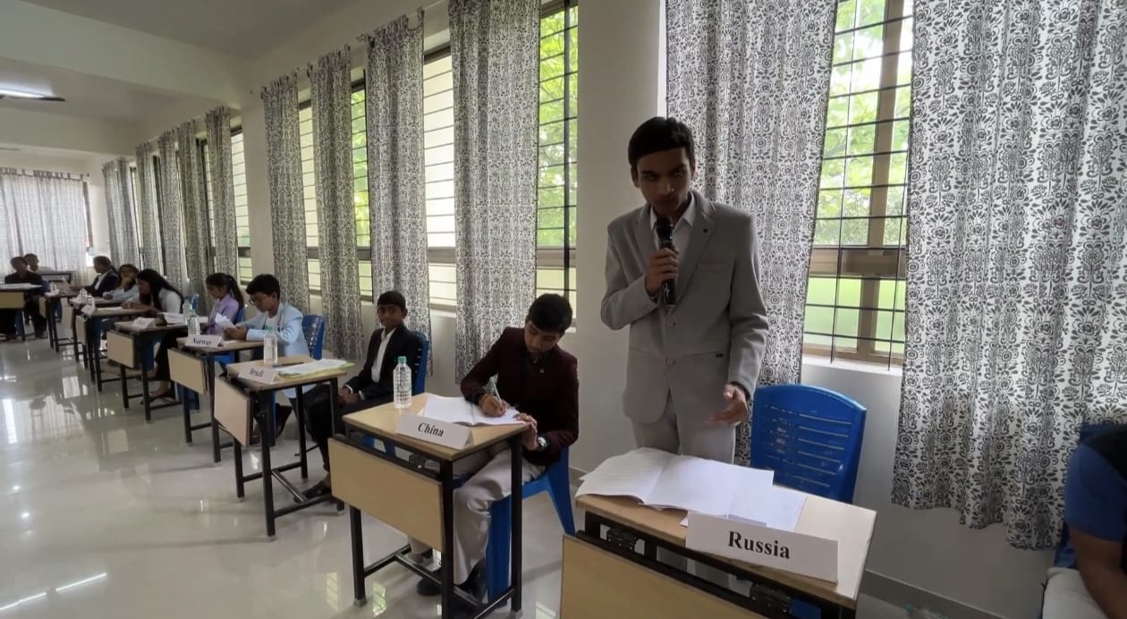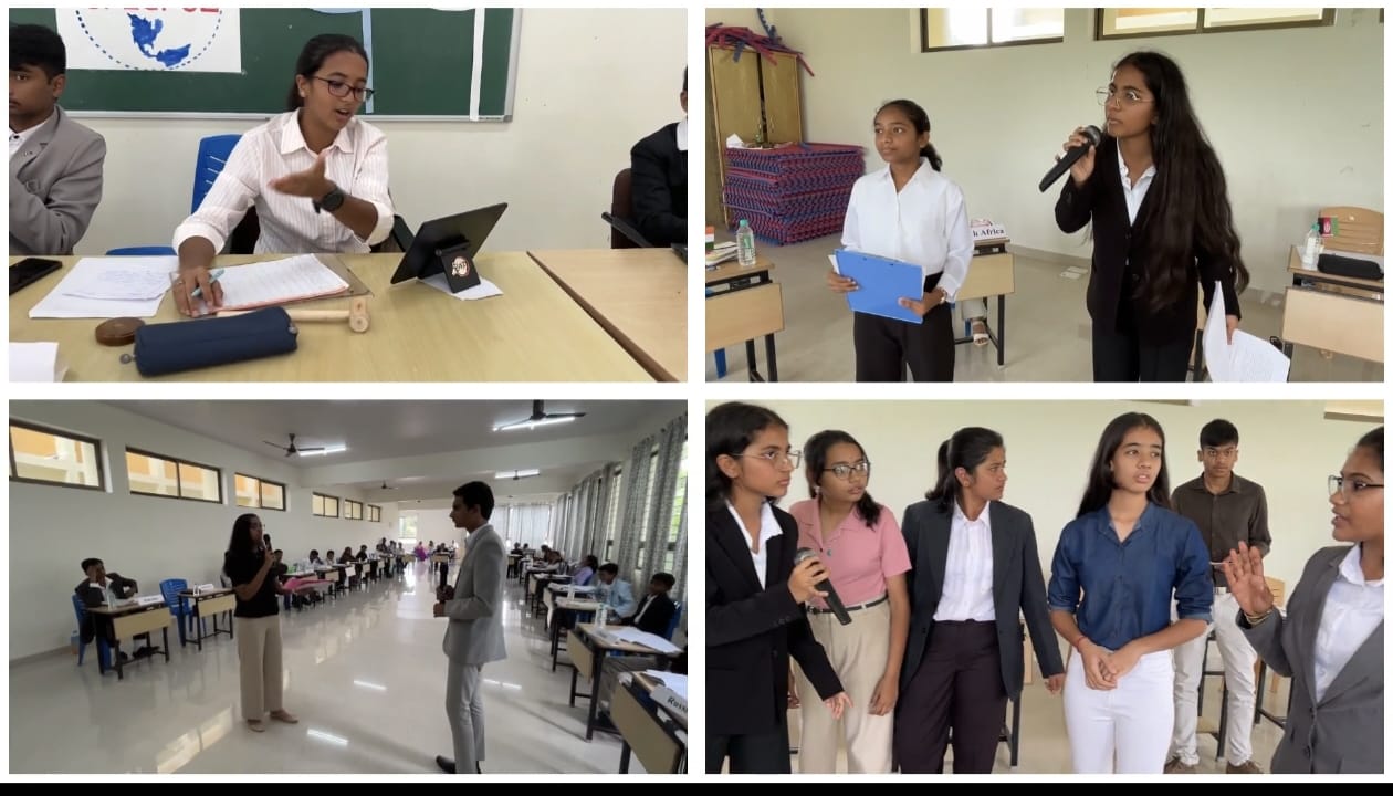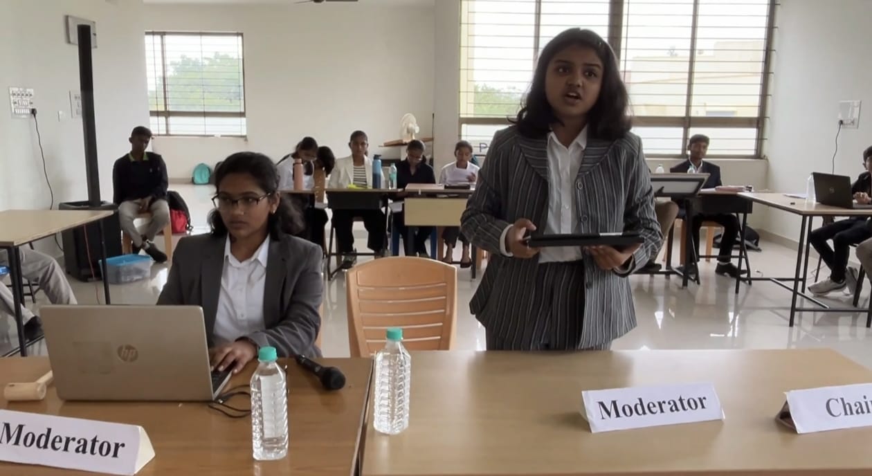 The SPECPOL committee was chaired by Brishti Parashar of Class 10 and moderated by Shreyas of Class 9, while the UNHRC was chaired by Kannika Keerthi of Class 10 and moderated by Saanvi Bhaskar of Class 9. The International Press was headed by Shishir of Class 9, who efficiently managed the reporting and documentation of the event.