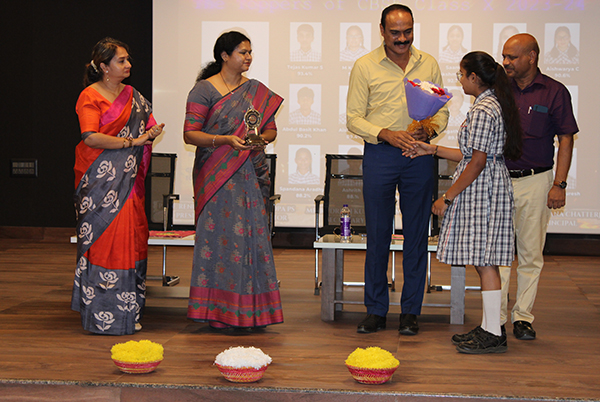 The Administrator of the school, Mr. Vijay Kumar V. Kulkarni presented the analysis of performance of the examinees and invited the toppers onto the dais to receive a bouquet and a memento.
